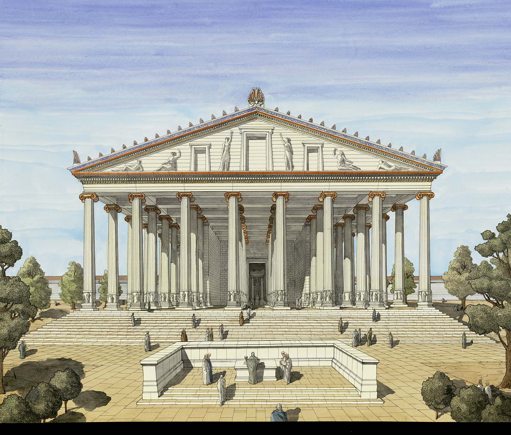 “I have set eyes on the wall of lofty Babylon on which is a road for chariots, and the statue of Zeus by the Alpheus, and the hanging gardens, and the colossus of the Sun, and the huge labour of the high pyramids, and the vast tomb of Mausolus; but when I saw the house of Artemis that mounted to the clouds, those other marvels lost their brilliancy, and I said, ‘Lo, apart from Olympus, the Sun never looked on aught so grand.'”